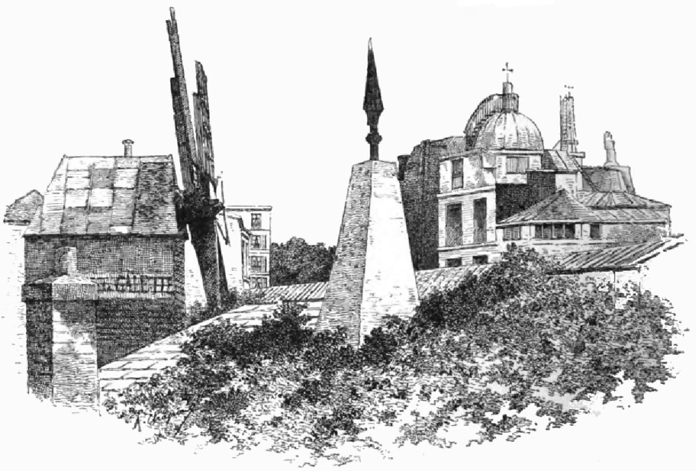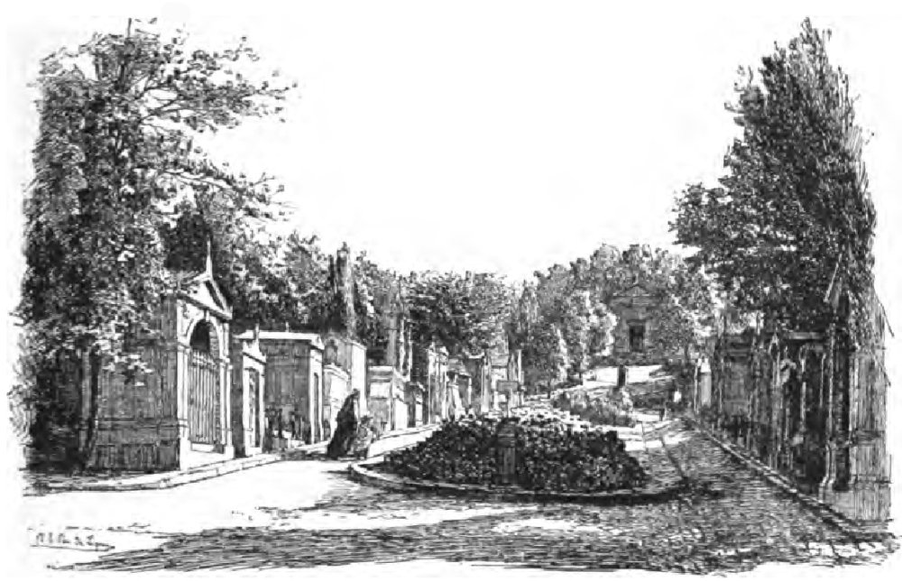 So much for the first generation of Paris Bohemians. The second comprised, among others, Privat d’Anglemont, Auguste Vitu, Schanne, Alfred Delvan, Champfleury, and, above all, Henri Mürger. Their haunt was the Café Momus, in the Rue Prêtres-Saint-Germain-l’Auxerrois. This café has, within the last few years, disappeared, and its site is now occupied by a colour-merchant’s warehouse and a pawnbroking establishment. The place no longer resounds with the laughter, the reckless gaiety, the folly of Bohemians such as those just named. At {367} the door of the little temple Death or Glory sometimes came and knocked, to summon one or other of its inhabitants away. Privat d’Anglemont entered the Municipal Maison-de-Santé and died there; Mürger, a few months afterwards, breathed his last in the same retreat. He left behind him a literary monument in the pictures, at once charming and grotesque, of that strange life in which he played so important a part. Every writer of distinction in Paris followed his bier to the grave; and the tomb erected to his memory is worthy of the man who slumbers beneath it. His companion, Privat d’Anglemont, lies near him; but without even a stone to tell his admirers where to cast their wreaths. Of the survivors, one—Schanne—became a toy-merchant in the Rue Saint-Denis and is suspected of having, to the delight of children, invented certain mechanical rabbits which beat a drum at every movement of the car to which they were harnessed.