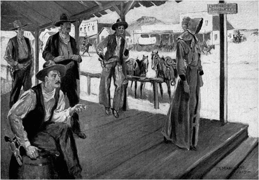 | The Woman Carried Herself so Ungracefully and Dressed so Plainly that Even the Saloon-door Loafers Cast Contemptuous Glances upon Her | Facing p. 254 |