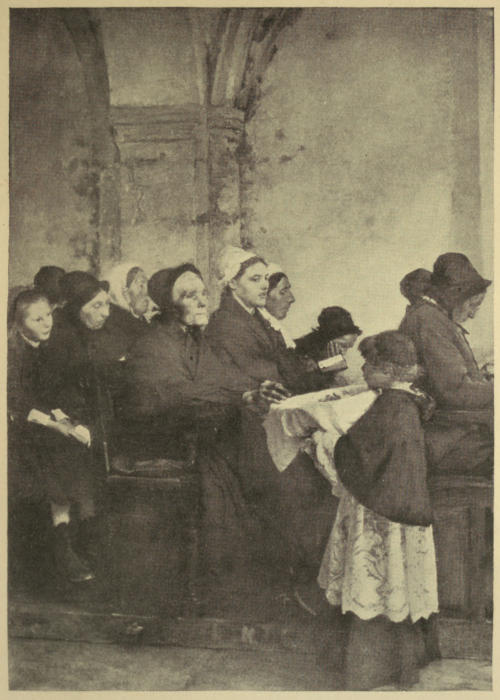 Connected with rural and provincial life are some quaint and pretty religious ceremonies. I need not refer to the Fête-Dieu, familiar to all travellers in Catholic countries. The sight of this well-known procession will please or repel you according as it appeals to your head or your imagination. But a far more picturesque procession, and one containing an element of poetry not at all discoverable in the Fête-Dieu, is the blessing of the fields and orchards between dawn and sunrise. What a novel and peaceful treat I used to find this ceremony in my far-off[16] French schooldays, whereas the Corpus Christi procession was but a scorching misery! To rise in the blue crepuscular light, with the early birds just stirring in their nests and heard behind the unshuttered windows, and emerge from the deep convent porch into the dew-washed country, following and followed by all the town, walking in two long lines, widely apart, behind the priests in their stoles and surplices, and chanting solemn Latin hymns! It was a rich Norman land we wandered along, now by glittering rills, with the smell of violets in the air, by narrow green paths through the newly ploughed earth, while the mounting sun cast joy into our faces, warming the chill spring wind, and provoking the birds to rival our hymns with their clearer and sweeter notes; then through continents of apple bloom, whole lakes above of pink-white blossoms on either side, with rivulets of upper blue seen through the tracery of foamy waves. Who, watching that solemn procession of amiable enthusiasts, chanting hymns to God and beseeching Him with confidence and fervour to bless the earth and all its produce,—wheat, wine, fruit, and flower, the water we drink, and the grass we tread upon,—could smile or carp at the sprinkling of the ground, of trees, of river-bed with holy water? There was something deeply impressive in the hymns sung at that early hour, while the towns still slept and the[17] woods were scarce awake. As a superstition it seemed to carry us back to the great primal superstitions that have run through the earlier religions. It remains ever upon memory as a large and noble and beautiful form of belief, where Pagan and Christian of all time meet in their fear of inclement nature. Religion has ever associated itself with the rural dread of disaster. Priests say masses for sick cattle, and if the cattle do not benefit by this harmless custom, the peasants are thereby greatly comforted; they have the satisfaction of knowing, at any rate, that should the cattle so prayed for die, it was in the design of Providence, against which even the prayer of devout man was inefficacious. If religion never made more injurious concessions than these to ignorance, the wildest freethinker that ever unsheathed a sword against it must be shamed into laughter at his bellicose attitude. Indeed, it is not only the Catholics of France who expect their ministers to stand between them and rural misfortunes by prayer and holy water; in the Protestant Cévennes a pastor of the Reformed Church has been known to exorcise a field of evil spirits, or tackle by prayers the devils in a poor beast, and even in an entire herd of cattle; and the peasants dread even more than the devil a mysterious god called the Aversier.[1] An apologist for these peculiar[18] customs maintains that since Christianity cannot prevent superstition it is wise in directing it,—sending it thus into a right and beneficial channel. This is surely debatable ground. Superstition is by no means the appanage of ignorance only, and we must be grateful when we find it inoffensive and poetical.