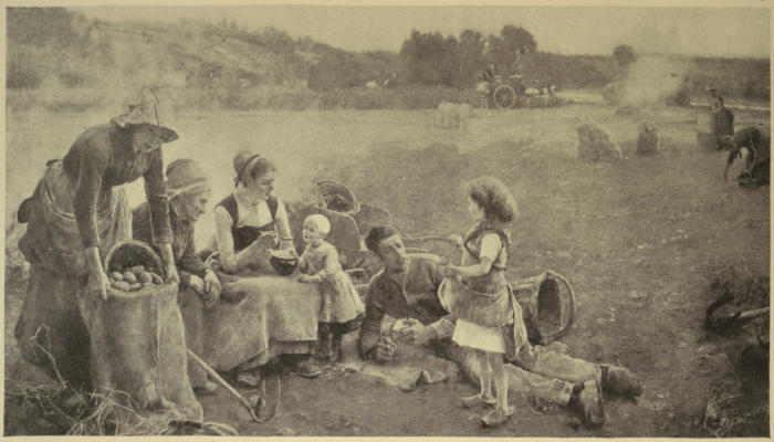 The farmer’s life has undoubtedly a larger share of natural interests than that of the hobereau. It is more purely animal, without any attachments to a world unconnected with the land. Ask a farmer what he thinks of politics, and he will tell you that he has nothing on earth to do with idiots or tricksters. He who must warily watch the humours of the seasons cannot trouble himself with the humours of electors and the ravings of voluble deputies. He walks his dew-washed meadows at dawn in wide-leafed felt; and, as he surveys the produce of his labour, his long[13] hours of sweating travail, can he feel other than contempt of the highly remunerative and windy profession of the politician? The superiority of the lord of the soil to whom he pays tribute, he will readily acknowledge, but none other. In the west he will speak of his family as “my sons and the creatures,” meaning his daughters. In the land of the Cévennes, his children are les drôles, and the same unquestioning obedience is expected from both sexes by this rough and silent tyrant of the soil. Outside his farm he has little esteem to waste upon his fellows; within, is far from prodigal of tenderness to his women-folk. These he expects to stand at meals in a corner of the kitchen, while he and his sons sit to eat. He governs haughtily, with few words; but in his rude heart he knows that the real, the silent, and unobtrusive government lies in the hands of his wife, who, with the tact and watchfulness of affection, corrects the errors of his harsh temper, and smooths out the asperities of home-life. It would be difficult to find a people to whom modern feminism is more repugnant than the French, and hard to name one that owes more to the intelligence, good-will, and incessant labour of women. Frenchmen object to women in the liberal professions, and make a desperate hue and cry the day a talented lady seeks leave to wear the lawyer’s toque and gown. Yet the fields are tended by women;[14] flags are waved at railway gates by them; in the lower ranks they bravely do all the rougher work of men, and nobody lifts a voice in protest. Woman may leave her home to make money in the humbler walks of labour, and cause no flutter in male bosoms; but let her elect to do so in paths where ambition lures and pay is higher, and instantly a howl of dismay runs through the ranks of her oppressors and slaves. And yet, if common sense and logic were general instead of rare virtues, even in France, it would be understood that the abandonment of the homes by peasant women is of much more serious consequence to a nation than the infrequent flight into legal and medical circles. The woman lawyer will always be the exception, and if she makes a good thing of her venture nobody is a penny the worse. But examine the home where the wife and mother spends her day in a factory, in the field, whose occupation requires no talent or ambition, and their physical and moral effects are of a very different nature from those that follow the winning of diplomas. The woman works as hard and as long as her husband, and is paid less. They return home to a cold hearth, an uncooked dinner. The man, never an angel where his stomach is concerned, swears and threatens, then sulks and goes off to the wine-shop. There is no compensation for the missing comfort in the few miserable francs[15] earned. No women are more admirably adapted for making the home happy than Frenchwomen. Their general competence is matched only by their industry; and it is a pity to see these fine domestic qualities wasted on outdoor work. Of course, in the case of widows nothing can be said. When the bread-winner is taken away, the woman must perforce shut the house door, and go abroad in quest of the right to live. Girls are in their proper sphere, too, in working manfully on their father’s farm until their marriage, and fatherless girls, without that most useful of national institutions, the dot, must needs find bread wherever they can. But the outside labour of the wife and mother can never be too deeply deplored, above all in the case of the best of wives or mothers, such as Frenchwomen, taking them as an average, usually are.