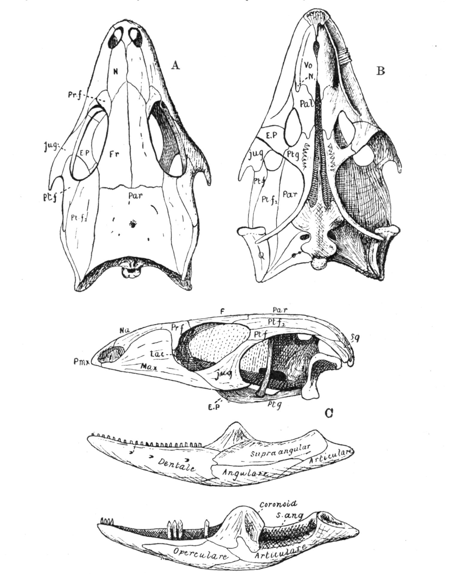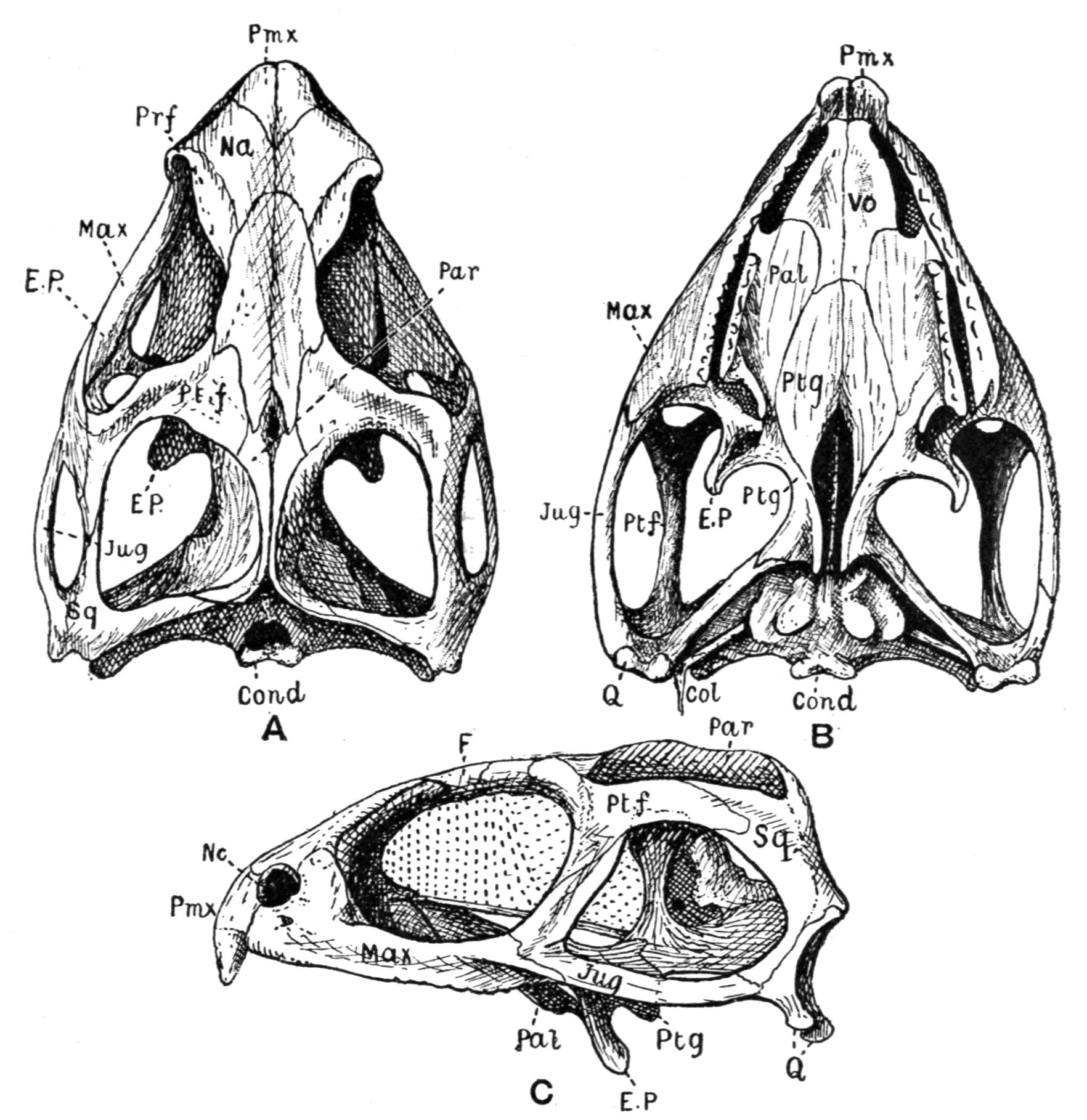 For further anatomical details see Shufeldt, P.Z.S. 1890, p. 148; Boulenger, P.Z.S. 1891, p. 109; and Stewart, P.Z.S. 1891, p. 119.