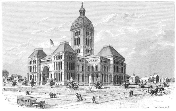 The program of the day included a fine parade with bands of music and banners; but a heavy rain came early in the day, and the parade had to be abandoned, and the people instructed to assemble at the exposition building at their own convenience, which they also did, in such great numbers that before the hour of opening the exercises every seat and standing place in the great auditorium were occupied. Many came from distant towns, cities and states; a special train brought nearly one thousand from St. Paul, with marshals, music and banners; the general council of the Lutheran Church, then assembled in Minneapolis, came in a body and occupied seats on the platform to the right of Cappa’s Seventh New York Regiment Band, while the Swedish chorus of one hundred and fifty voices, under Prof. Norman, occupied the platform to the left.