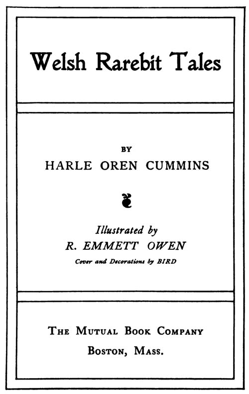 The origin of the Welsh Rarebit Tales was as follows: A certain literary club, of which I am a member, is accustomed to hold semi-occasional meetings at some of the uptown hotels. At the close of the dinner each of the fifteen members is permitted to read to the others what he considers his most acute spasm since the previous meeting. The good and bad points of the manuscript are then discussed, and we believe that much mutual benefit is thereby derived.