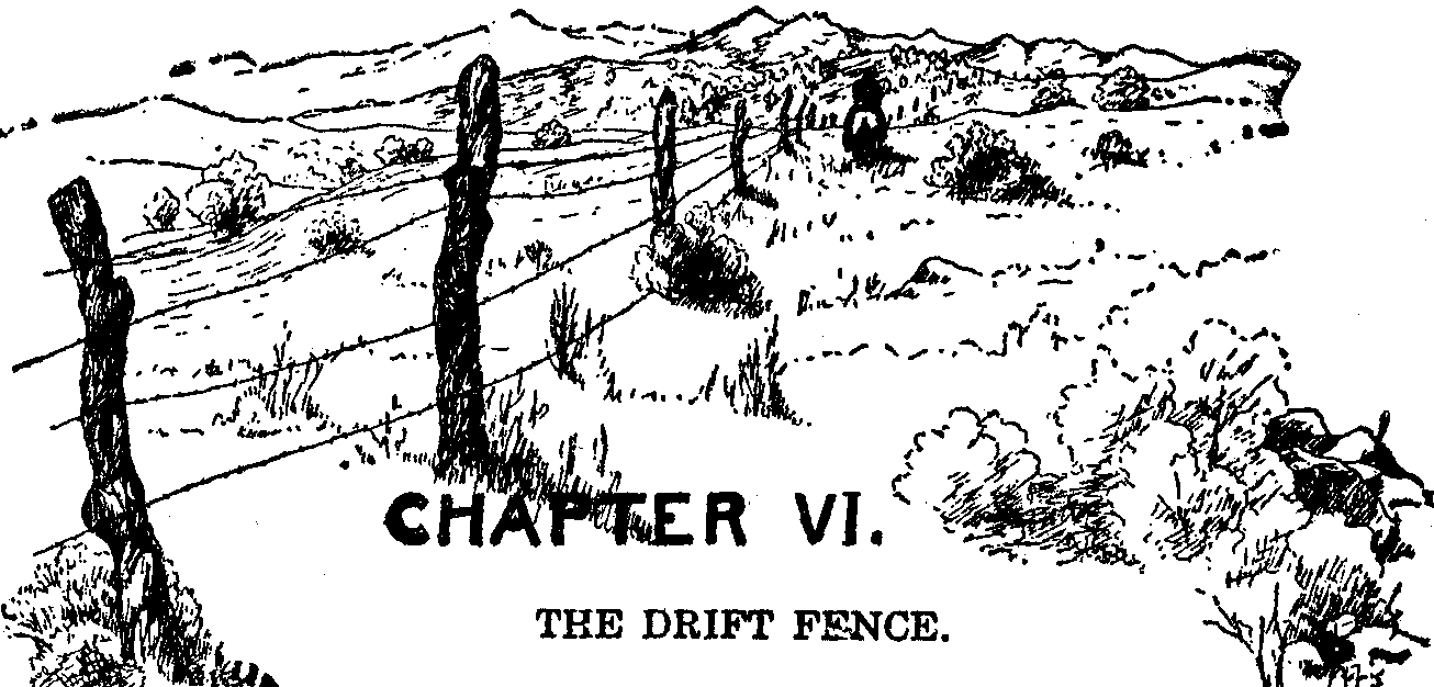 They were seated in the shade of a cedar on the ridge not far from the drift fence gate, when Phil saw three horsemen approaching from the further side of the fence. By the time the horsemen had reached the gate, Phil knew them to be Yavapai Joe, Nick Cambert and Honorable Patches. Kitty, too, had, by this time, recognized the riders, and with an exclamation started to rise to her feet.