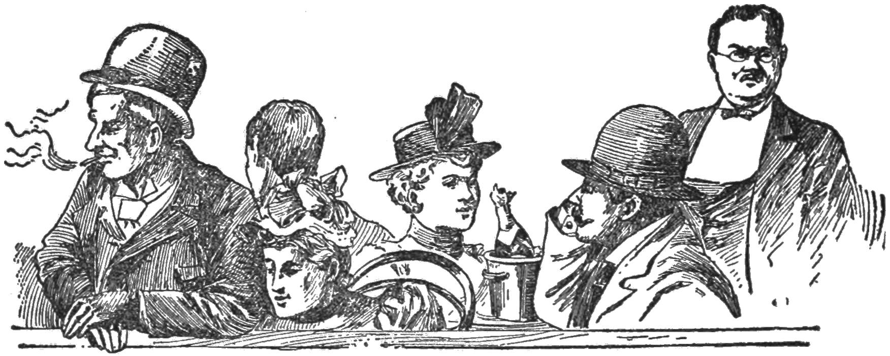 Hogan and Batchelder’s, two well-known and281 popular resorts on State street, also cater to the sporting element. They have private supper-rooms in which hilarious parties are wont to hold high revel, especially after a return from a successful day at the races.