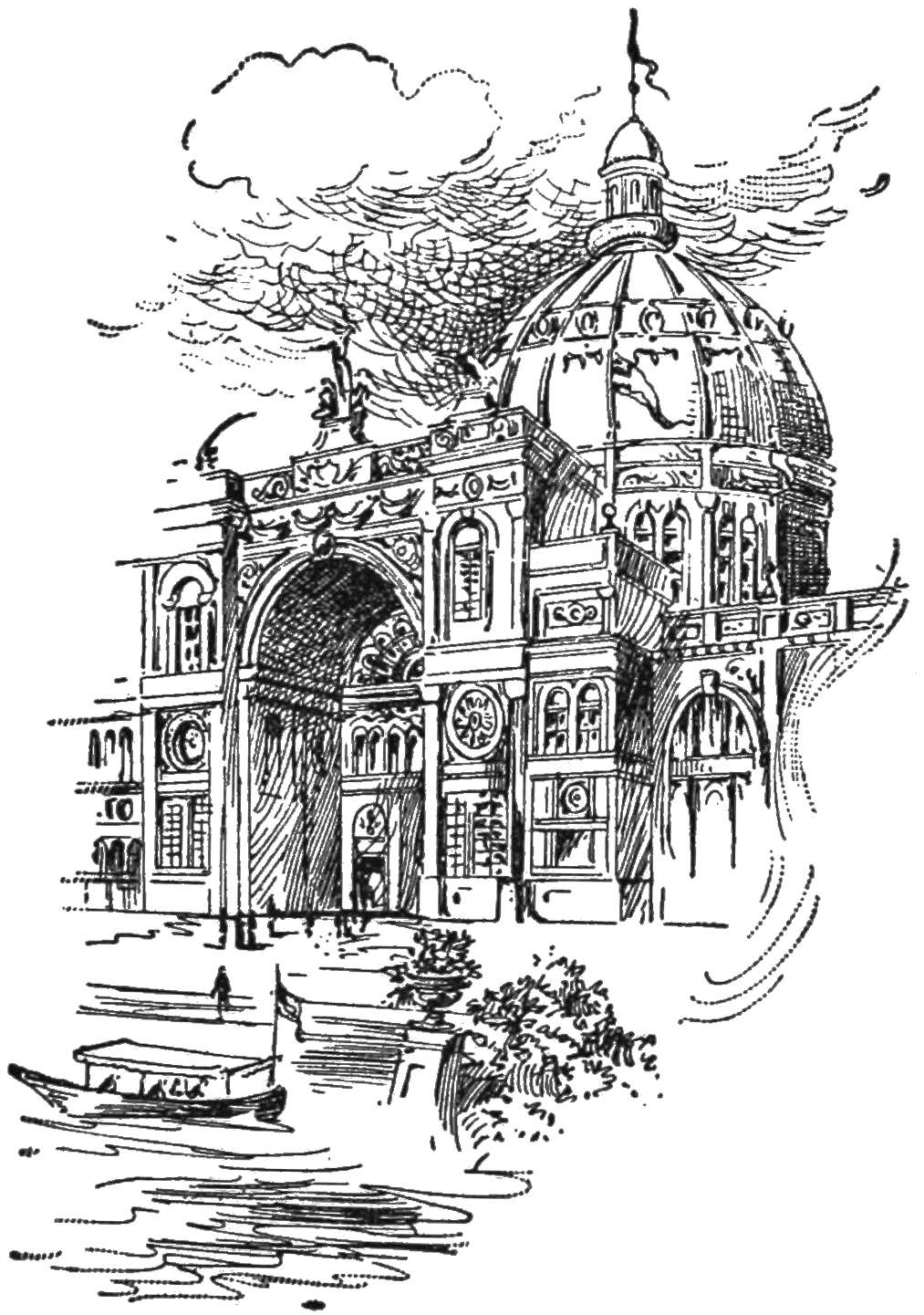A person of imaginative temperament can easily picture to himself the attractions that may be found in this locality. The “Bazaar of All Nations” is a mammoth structure in which will267 be representatives of almost every clime under the sun, grouped in their native habitations and presenting to the visitor exactly the same appearance as that which characterizes their home routine of life. Their manufactures, occupations and pleasures will be graphically pictured. The “Street in Cairo” is to be exactly what its name implies. A street in that sleepy and quaint old Egyptian city will be deftly reproduced, in passing down which the visitor may see sights exactly similar to those that would greet his vision if he were touring in far-off Cairo itself instead of in Chicago—the famous city that finds everything possible, even to the reproduction of an entire Egyptian city, to say nothing of a single street from such. The Moorish Palace will be a splendid structure and within its gorgeous recesses one may wander and try to imagine how Othello felt when he paced his vaulted halls a prey to the demon jealousy.
