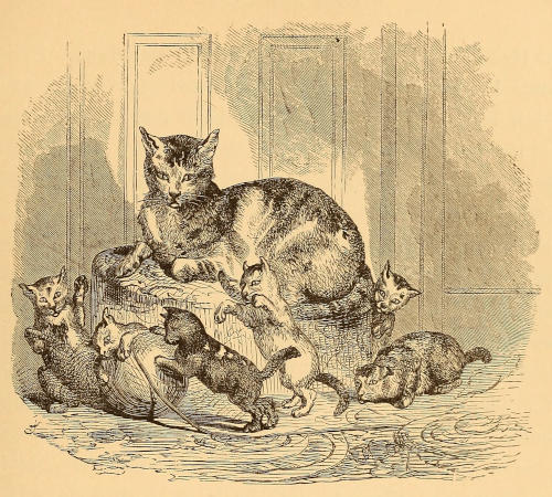 “Well, Mrs. Feathertop, this is a dispensation!” said Mrs. Scratchard. “Your children are all drowned at last, just as I knew they’d be. The old music-teacher, Master Bullfrog, that lives down in Water-Dock Lane, saw ’em all plump madly into the water together this morning; that’s what comes of not knowing how to bring up a family.”