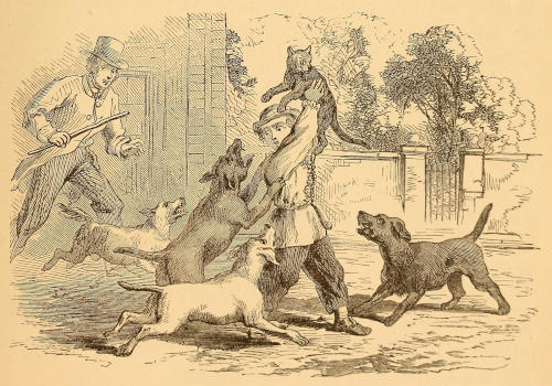 Another squirrel—doubtless hearing of Whiskey’s good luck—began to haunt the same yard; but Whiskey would by no means allow him to cultivate his young mistress’s acquaintance. No indeed! he evidently considered that the institution would not support two. Sometimes he would appear to be conversing with the stranger on the most familiar and amicable terms in the back yard: but if his mistress called his name, he would immediately start and chase his companion quite out of sight, before he came back to her.
