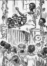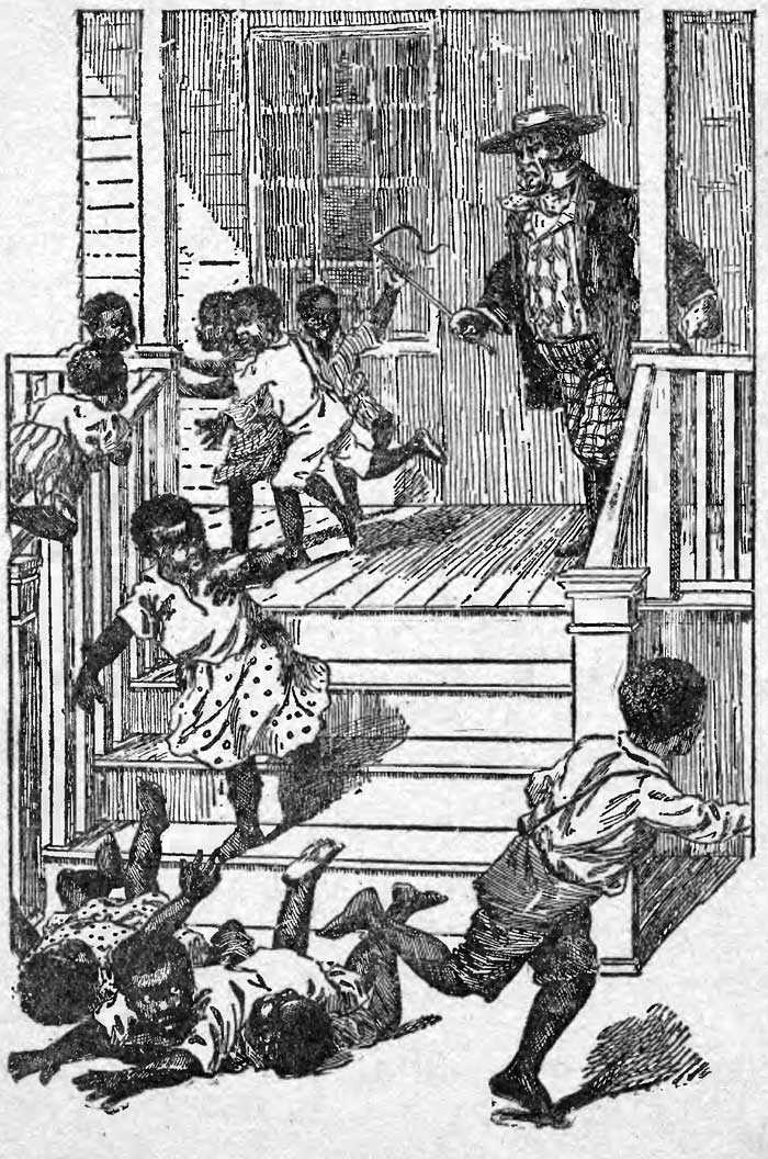 Now began the saddest time of Uncle Tom's life. Every morning very early the slaves were driven out into the fields like cattle. All day long they worked hard. The burning sun blazed down upon them, making them hot and tired. Legree and his two chief slaves, called Quimbo and Sambo, marched about all the time with whips in their hands. At night they drove the slaves back again to their miserable huts.