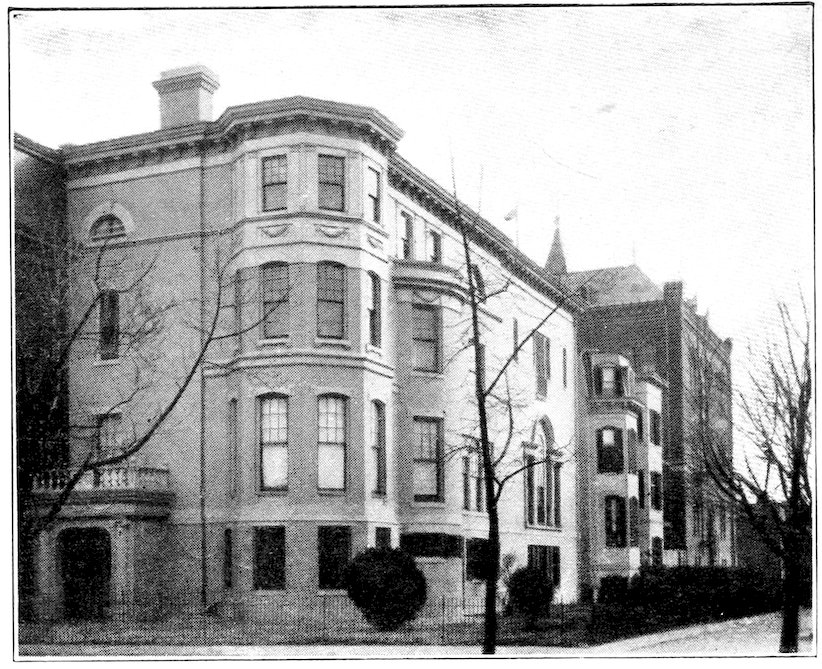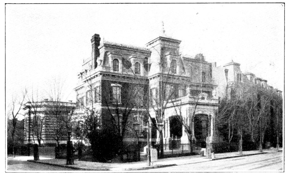 Around Lafayette Square, which faces the White House, history, poetry, romance, and chivalry have twined an immortal wreath. Every monument commemorates a hero. Here, too, is the old private residence of Dolly Madison, the old home of the British Embassy, where Owen Meredith wrote “Lucile”; also the Webster home, where once lived the French Embassy; and St. John’s Episcopal Church, where many Presidents have worshiped. Here Webster, Sumner, and Slidell lived at different periods. The old Decatur house stands on this square. The Admiral had a window cut through, so that he could signal the President in the White House. They missed the telephone. On this square lived Diaz, of Mexico; here Don Cameron and Blaine each lived in 183the same house, now occupied by Senator Hanna. On the north side is the handsome residence of Secretary of State John Hay.