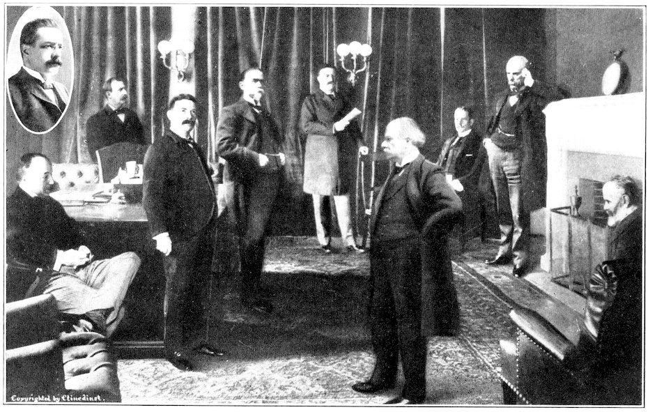Mr. Cortelyou has been so long engaged in recording other people’s thoughts as a secretary that it remains to be proved whether he possesses any opinions of his own. It is only the confidence of the country 162in President Roosevelt’s judgment of men whom he has been in a position to judge which prevents a general expression of surprise that our great “captains of industry” have been passed by in the selection of the first occupant of a position destined to be one of the most important in the Cabinet. Mr. Cortelyou, however, may do very well while we are playing at the department, but when we get down to business the portfolio of Commerce will have to be held by hands accustomed to weightier affairs than a stenographer’s note-book.