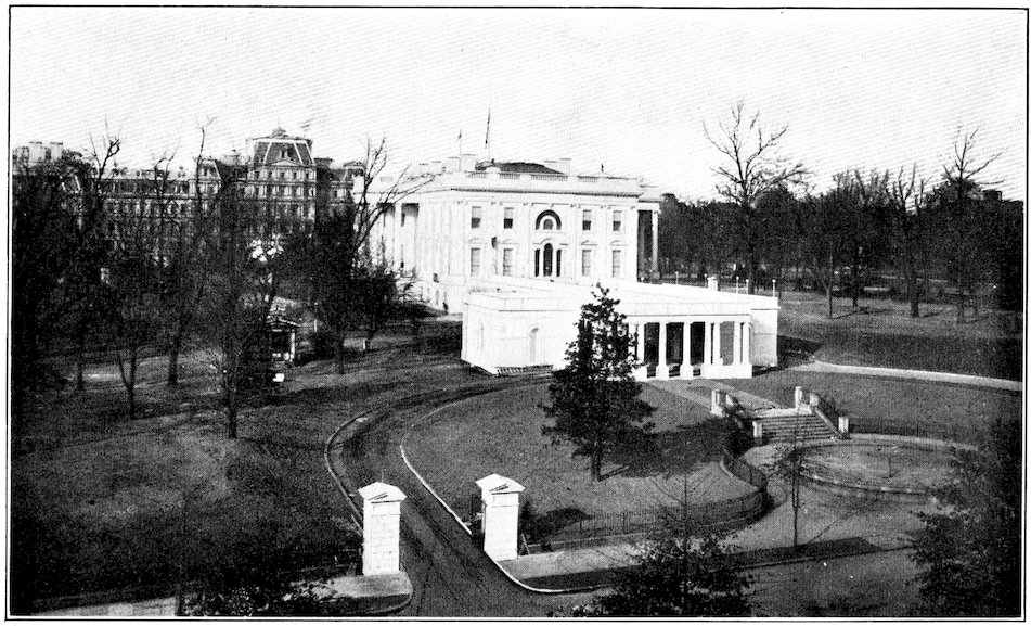 The building contains thirty-one rooms. The whole has been refitted and almost rebuilt by the present occupant, President Theodore Roosevelt. Whether seen through the tracery of leafless trees or through the verdure of summer, the White House always looks cool, restful, and beautiful. The situation is not regarded 167as very healthful, but everything that modern science can do is now being employed to improve its sanitary condition.