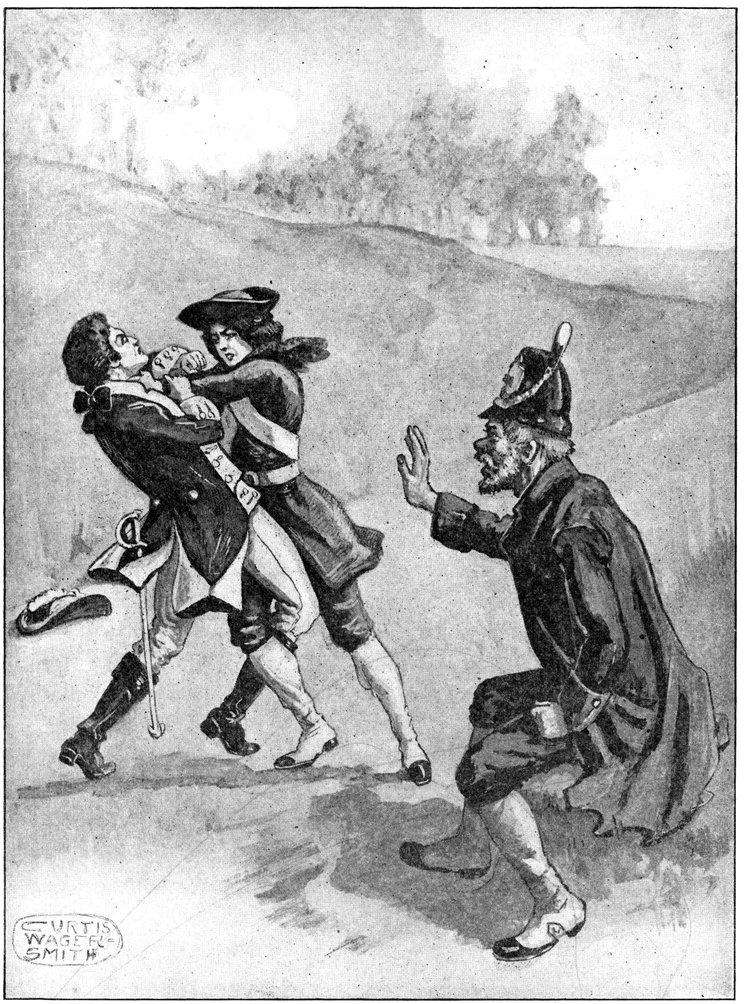Long did Shirtliffe sit beside Morley, repeating the messages over and again. No fear of forgetting them, he could remember naught else. As the day wore on he began to realize his condition and he knew if he ever expected to reach Washington’s army, he must move on. In the distance he heard heavy firing and the sound guided him. He felt sure that the Americans had met the reinforcements coming from Princeton and that a battle was in progress. The thought stirred his blood, and he struggled to his feet, gave a last glance at Morley and went on mumbling to himself, “Tell Debby Mason!” Weaker and weaker he grew and as his mind cleared, a sense of his danger absorbed him. Was this death? This strange, unusual weakness? At any moment he might fall and be unable to rise.