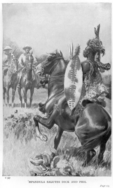 As for Dick, he seemed to bear a charmed life; for although he fearlessly exposed himself, day after day, wherever the fighting happened to be fiercest and most stubborn, he had thus far received no hurt more serious than a mere scratch or two, and a rather severe contusion from the blow of a knobkerrie that had all but unhorsed him; but this immunity may have been due, at least in part, to the fact that Mafuta was always unobtrusively close at hand, ready to guard his beloved young master, ay, and even to lay down his life for him, if necessary.