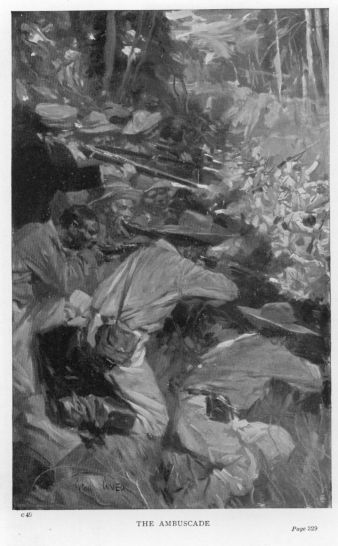 The rear-guard under Carlos had not passed much more than a hundred yards ahead when the leading files of the pursuers appeared round the bend of the path, breathless, from the fact that the retreating party had no sooner disappeared round the elbow than the Spaniards had broken into a run, taking advantage of the circumstance that they were for a moment out of sight of the enemy to shorten the distance between themselves and the pursued. As the vanguard of some twenty pursuing Spaniards dashed round the bend they dropped on one knee and raised their rifles to their shoulders, availing themselves of the lightning flashes to take aim at the little crowd of retreating figures imperfectly seen here and there through the overhanging and swaying branches.