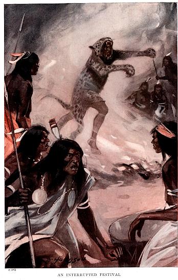 Long into the night sat the pair, crouching over their camp fire, for though the days were hot the nights were bitterly cold, even in that valley between the two ranges of mountains; and while Dick gazed abstractedly aloft into the velvet blackness at the innumerable stars that glittered above him through the frosty atmosphere, Phil spoke of the strange dreams—which he persisted, half-jestingly and half in earnest, in regarding as memories—that visited him so frequently, of curious scenes that he had witnessed and remarkable deeds that he had done in the far past, either in imagination or reality, he could not possibly say which. And while he talked and Dick listened, vacillating between amusement and conviction, some twenty stalwart figures, thin and aquiline of feature, copper-hued of skin, and strangely clothed, came creeping up out of the darkness until they reached a clump of bush within earshot of the pair, where they lurked, waiting patiently until the audacious intruders upon their most sacred territory should resign themselves to sleep—and to a captivity which, as planned by the chief figure of the group, was to be of but brief duration, ending in a death of unspeakable horror.