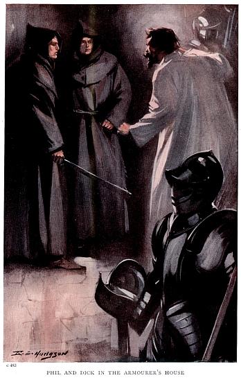 “Now, Reverend Sirs,” said the armourer as, having lighted the two lamps, he turned and faced the two hooded figures, with a bow, “I am at your service. Be pleased to give me your commands.”