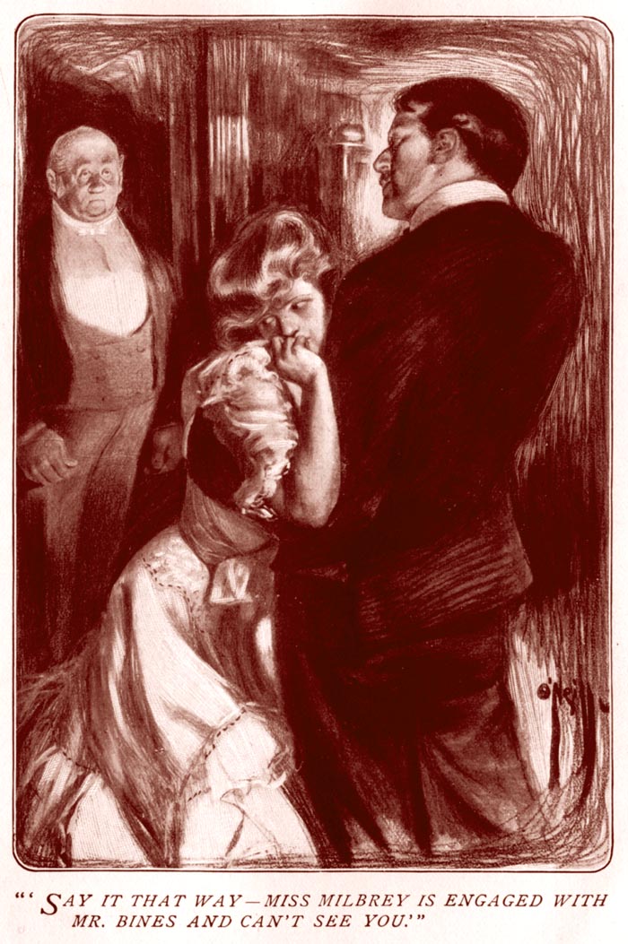 "'Say it that way--" Miss Milbrey is engaged with Mr. Bines, and can't see you"'"