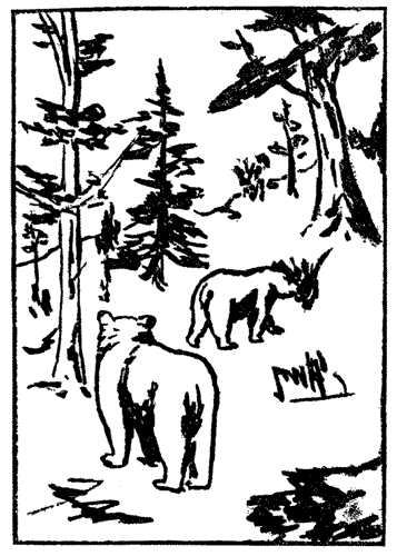 It was in the very middle of the day—a sultry day, when the sun was blazing hot—that we were awakened by the sound of somebody coming through the bushes. The wind was blowing towards us, so that long before he came in sight we knew that it was a bear like ourselves. But what was a bear doing abroad at high noon of[30] such a day, and crashing through the bushes in that headlong fashion? Something extraordinary must have happened to him, and we soon learned that indeed something had.