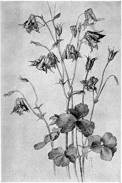 The "comfortable feel" of the garden is largely assisted also by the nature of the flowers and plants which he has elected to cultivate: Gilly-flowers, Pinks and Purple Columbines, Sweet Carnations, Daffodils and lovèd Lilies. To quote Korumushi, a poet of the race which has the spirit of flower-worship in its heart—