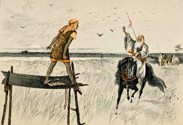 The aged warrior looked down in a sort of scornful pity upon his boy, standing among the stalks of grain; half in jest, half in charity, he muttered, "Yes, then I will bless thee," and rode away.