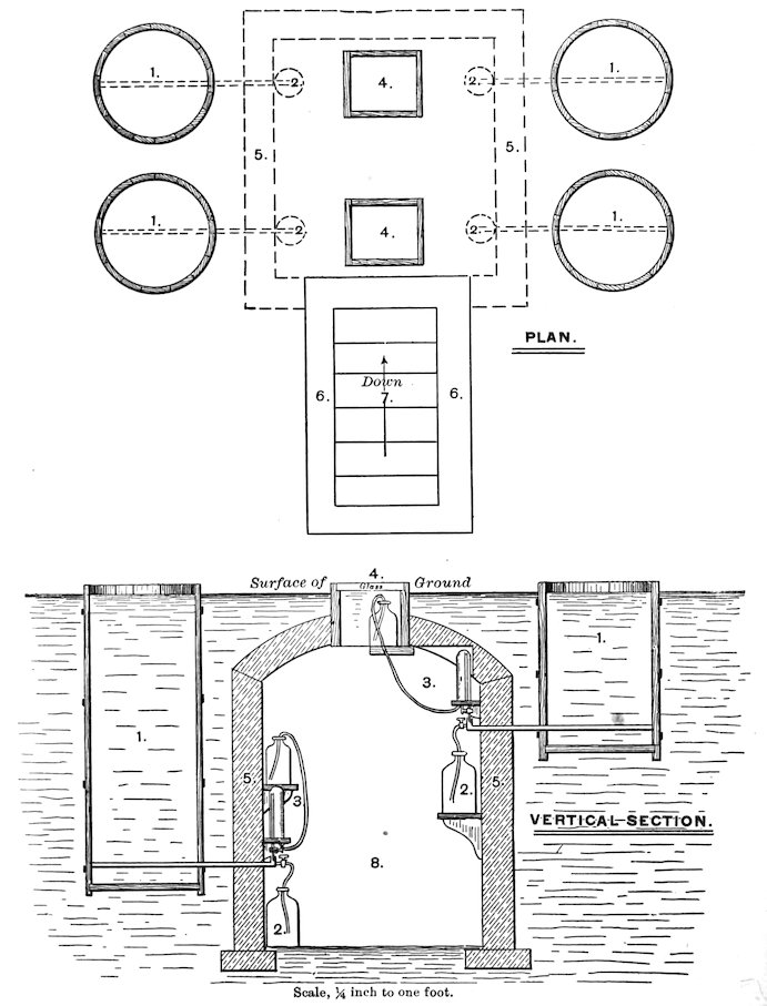 | „ | 23. | Ground plan and vertical section of lysimeters and vaults showing position of the apparatus | 166 |