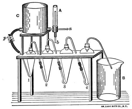 Estimation of Nitric and Nitrous Acids by Colorimetric Comparison, pp. 548–570.—Delicacy of the process; Hooker’s carbazol method; Phenylsulfuric acid method; Estimation of nitric in presence of nitrous acid; Metaphenylenediamin method for nitrous acid. Sulfanilic acid test; Naphthylamin process; Use of starch as indicator; Method of Chabrier; Ferrous salt method; Potassium ferrocyanid method; Collecting samples of rain water.