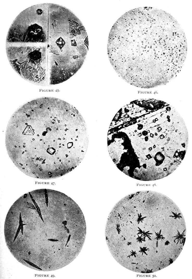 Miscellaneous Determinations, pp. 247–281.—Mechanical determination of clay; Effect of boiling on clay; General conclusions; Distribution of soil ingredients; Percentage of silt by classes; Interpretation of silt analysis; Number of soil particles; Surface area of soil particles; Logarithmic constants; Mineralogical examination of silt; Microscopical examination; Petrographic microscope; Forms and dimensions of particles; Silt classes; Crystal angles; Refractive index; Polarized light; Staining silt particles; Cleavage of soil particles; Microchemical examination of silt particles; Petrographic examination of silt particles; Separation of silt particles by specific gravity; Separation with a magnet; Color and transparency; Value of silt analyses; Authorities cited in part fourth.