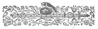 "As they approached, a raven, who sat upon the topmost stone, black against the bright blue sky, flapped lazily away,[Pg 365] and sunk down the abysses of the cliff, as if he had scented the corpses beneath the surge. Below them from the gull-rock rose a thousand birds, and filled the air with sound; the choughs cackled, the hacklets wailed, the great black-backs laughed querulous defiance at the intruders, and a single falcon with an angry bark darted out beneath their feet, and hung poised high aloft, watching the sea-fowl which swung slowly round and round below."