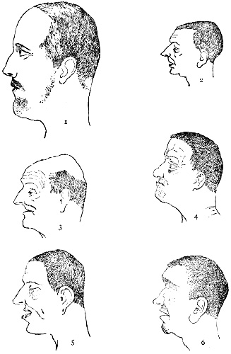 The uncertainty on this borderland may be illustrated by the following case. W. T. is a boy of fifteen, a very small ugly-looking lad, with a small head, low in the forehead, larger in the back, high narrow palate, heavy sullen aspect, and slight external squint of left eye. His father and mother are healthy and sober people; one of the father’s uncles died in an asylum, and one of his aunts committed suicide. The boy had convulsions at the age of eighteen months, and was very backward in walking and speaking; at the age of twelve he could not dress himself. At school he was very dull, apt to strike his companions if roused, solitary, fond of reading, but not remembering what he had read. His schoolmaster, an experienced teacher, had never known so peculiar a boy. But he was not a bad or untruthful lad, and had no vices. When he left school his father tried to teach him his own trade of shoemaking; but, though he had no special distaste for the work, he could not learn even the most elementary part of the trade. Other boys made fun of him, and he complained of his little sister, ten years of age, doing the same. One day, when he had been left quietly sitting alone with this sister, he took up his father’s hammer, which was at his feet, and struck her, smashing in her skull. Then he locked the back door, as he always did on leaving home, and went out, closing the front door after him. He returned in an hour, wet from the rain which had begun to fall. He was taken to prison,[Pg 5] and from the first displayed no emotion; he ate and slept well, and was a good, docile boy. The judge who tried him (Lord Coleridge) was evidently in favour of a verdict of manslaughter. The jury fell in with this suggestion, although the authority of Dr. Savage was in favour of insanity, and the boy was condemned to ten years’ penal servitude.[2] Such a case shows very well the inaccuracy of our hard and fast lines of demarcation. Here was a person clearly of abnormal or degenerate character, and liable to sudden violent impulses; he would nowhere be popularly recognised as insane, and possibly it is not desirable that he should be so recognised. On the other hand, he cannot correctly be termed an instinctive criminal; he is on the borderland between the two groups, and a touch may send him in either direction.