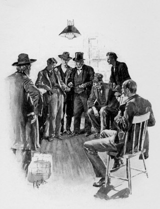 “You’ll be glad to hear, Jud, that we’re getting along beautiful on that safe. We’re a-going to blow the stuffing out of it the next thing you know. Reckon if you ain’t particular we’ll just borrow a sleigh we see out here and a set of Sours’s harness for a couple of our horses when we go away, ’cause we think the specie may be a little heavy. Besides, we’re calculating there may be some other stuff around town worth taking off–Winchesters and such agricultural and stock-raising implements,” and he laughed. He seemed to be in very good humor.