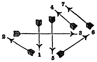 Three down, three to the left, three to the right, and three up, for the time of 12⁄8:—
