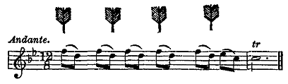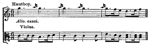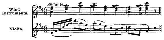 Another retardment, arising from a different cause, frequently takes place in the trumpet-parts; it is when they contain a quick flow of passages such as this:—