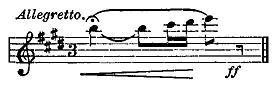 an effect all the worse because the final accent, struck at the commencement of the third bar by the rest of the orchestra, comes a third of the time too slow in the trumpets, and destroys unity in the striking of the last chord.