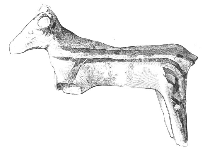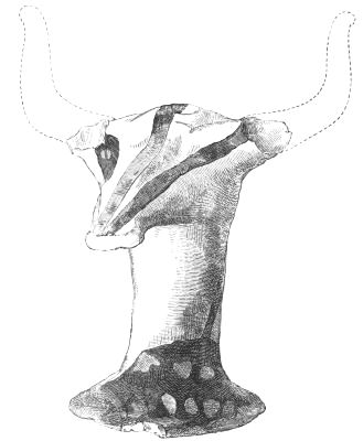 1. He presents to us the rude figures of cows; and[vii] upon a signet ring (No. 531) and elsewhere, cow-heads not to be mistaken. He then points to the traditional worship, from the first, of Hera in Argolis; and he asks us to connect these facts with the use of Boöpis (cow-eyed) as a staple epithet of this goddess in the Poems; and he might add, with her special guardianship of Agamemnon in his interests and his personal safety (Il. I. 194-222).