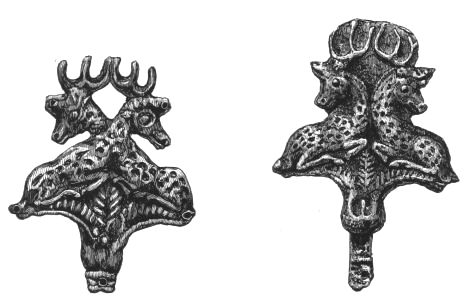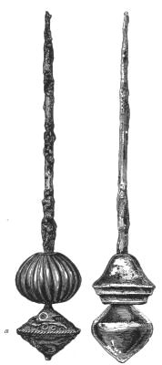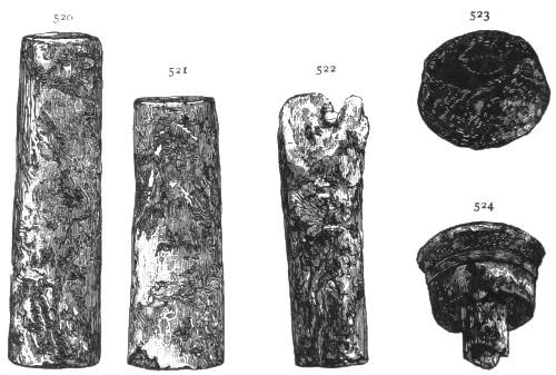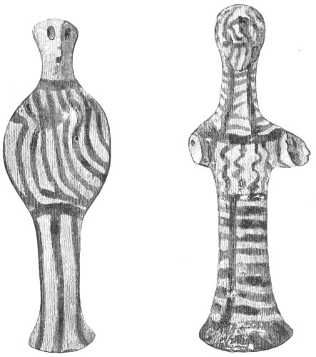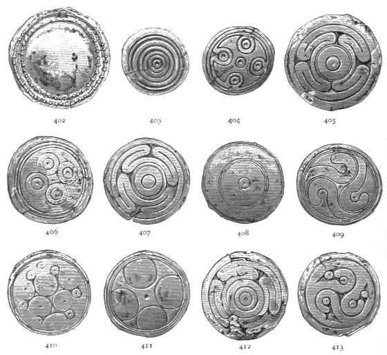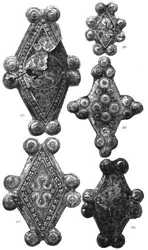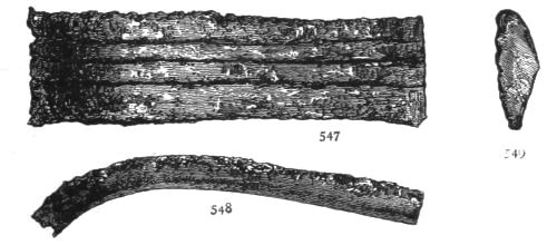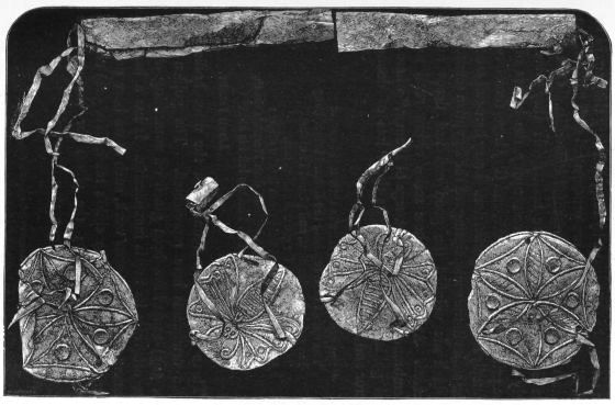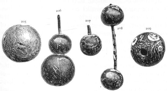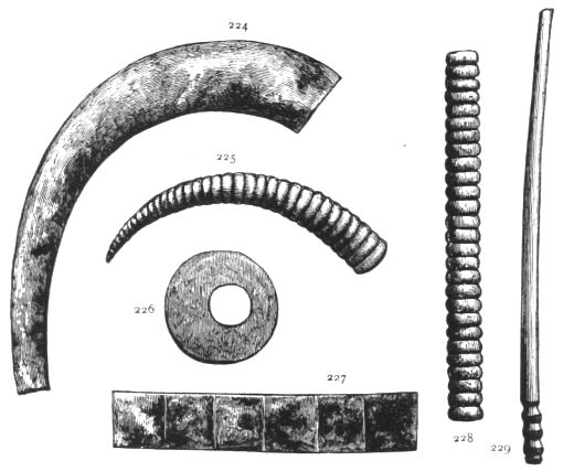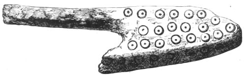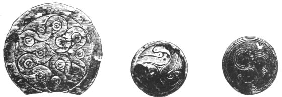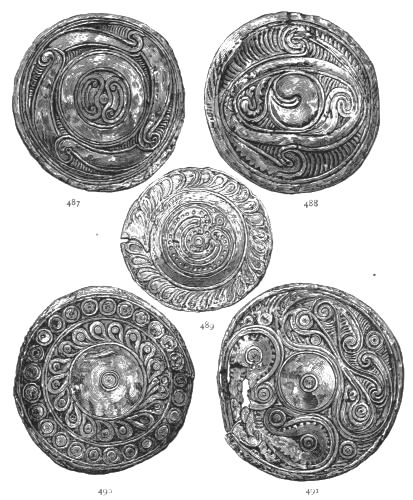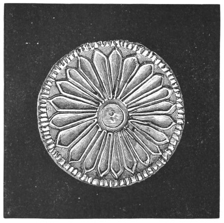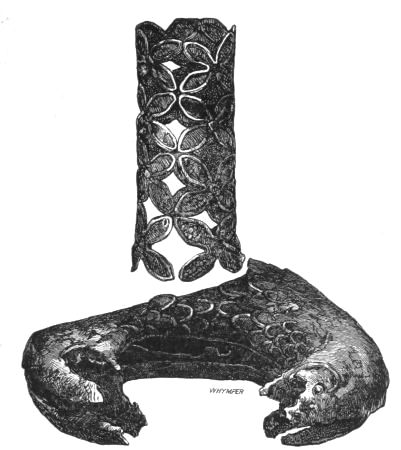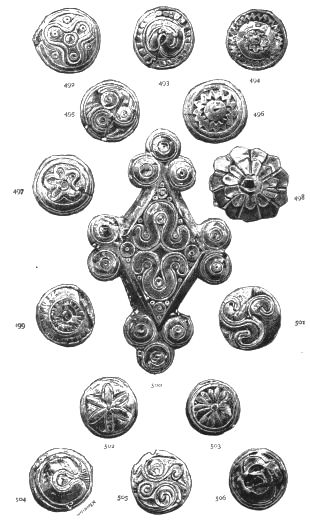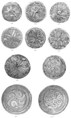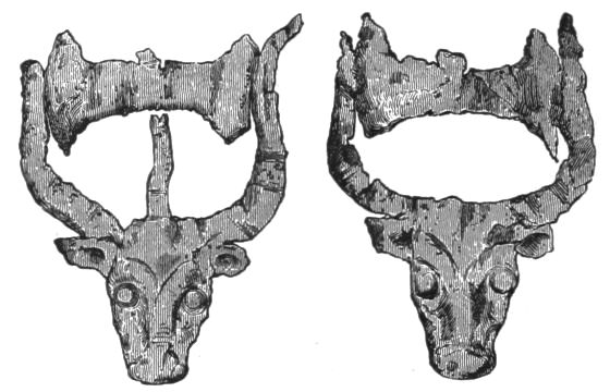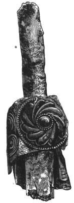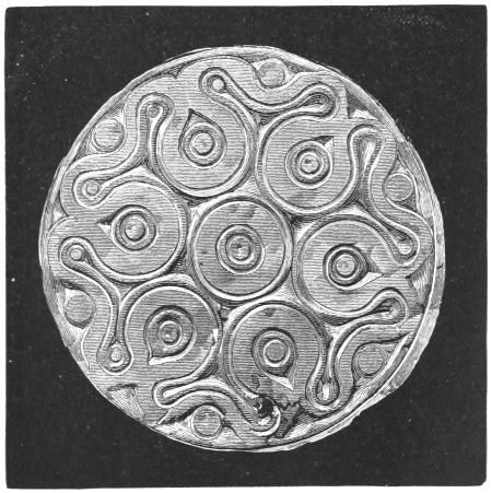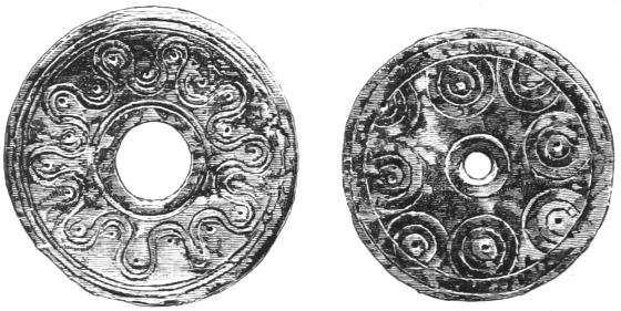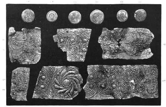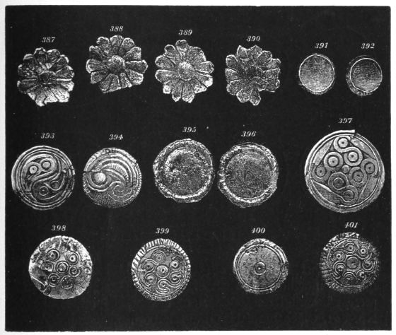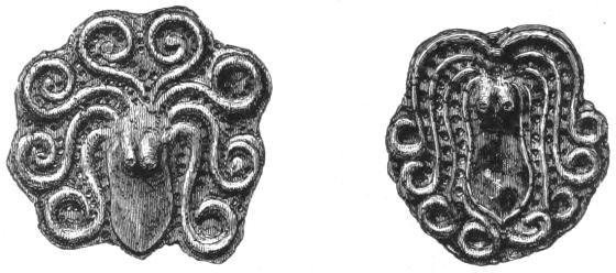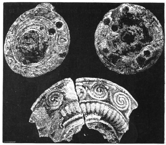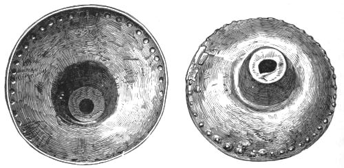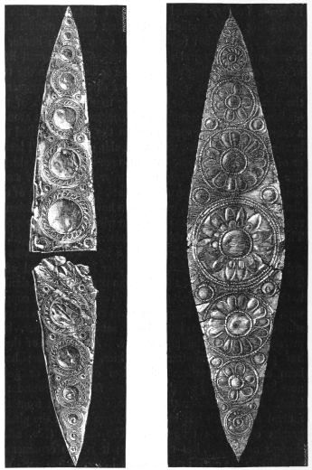 They also appear on the sword-handle knobs. The helos of Homer is commonly rendered a nail or stud, which has a head of small size; but the word probably includes the larger buttons or bosses, which lie in lines along some of the swords. (See on this point pp. 281, 2; 303, 5, 6.)