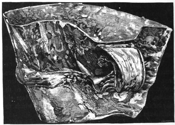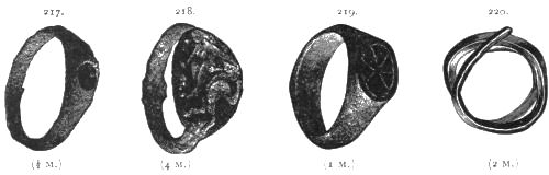 4. We have next to observe (a) that fire was applied to these remains; (b) that the application of it was only partial; (c) that the metallic deposits are said to show marks[15] of the action of it (pp. 158, 165, 188, 198, 201, 208, 215, 218, 260, 266, 321, 330): so do the pebbles (p. 294). We see, therefore, that the deposition of the precious objects took place either at the same moment with the fire, or, and more probably I suppose, before it had entirely burned out.