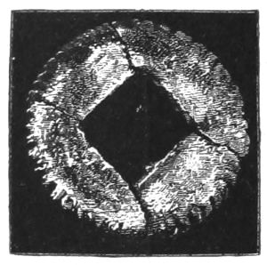 [366] Owing to the ashes and smoke with which the cylinder is covered, the upper row of circles did not appear in the photograph.