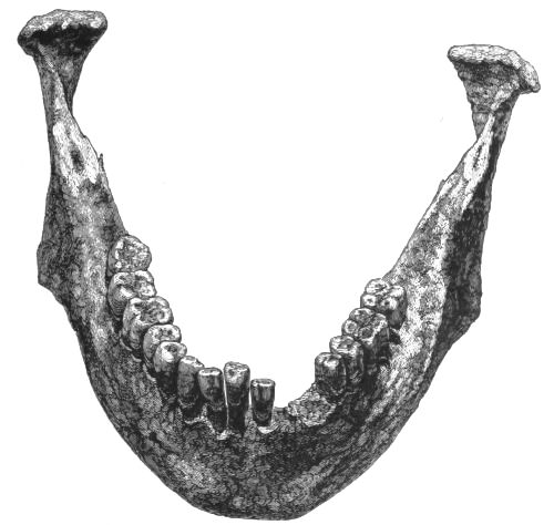 Let us place clearly before our eyes the account given by the Shade of Agamemnon, in the Eleventh Odyssey (405-434), of the manner of his death. No darker picture could be drawn. It combined every circumstance of cruelty with every circumstance of fraud. At the hospitable board, amid the flowing wine-cups, he was slain like an ox at the stall, and his comrades like so many hogs for a rich man's banquet; with deaths more piteous than he had ever known in single combat, or in the rush of armies. Most piteous of all was the death of Cassandra, whom the cruel Clytemnestra despatched with her own hand while clinging to Agamemnon; nor did she vouchsafe to her husband the last office of mercy and compassion, by closing his mouth and eyes in death. Singularly enough, Dr. Schliemann assures me that the right eye, which alone could be seen with tolerable clearness, was not entirely shut (see the engraving at p. 297); while the teeth of the upper jawbone (see the same engraving) did not quite join those of the lower. This condition, he thinks, may[xxxviii] be due to the superincumbent weight. But if the weight had opened the jaw, would not the opening, in all likelihood, have been much wider?