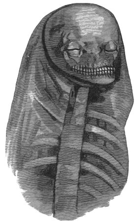 In the case of notable persons, the combustion was not complete. For not the ashes only, but the bones, were carefully gathered. In the case of Patroclos, they are wrapped in fat, and put in an open cup or bowl (phialè) for temporary custody (XXIII. 239-44) until the funeral of Achilles, when with those of Achilles himself, similarly wrapped, and soaked in wine, they are deposited in a golden urn (Od. XXIV. 73-7). In the case of Hector, the bones are in like manner gathered and lodged in a golden box, which is then placed in a trench and built over with a mass of stones (Il. XXIV. 793-8). Incomplete combustion, then, is common to the Homeric and the Mycenean instances. But in the case of the first tomb at Mycenæ, not only was there no collection of the bones for deposit in an urn, but they had not been touched; except in the instance of the middle body, where they had simply been disturbed, and the valuables perhaps removed, as hardly anything of the kind was found with it. In the case of the body on the north side, the flesh of the face remained unconsumed.