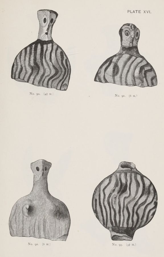 3. Like the site in the Agora, so the character of the tombstones, which is in strict correspondence with the style of many of the ornaments,[13] and the depth of the tombs, appear with one voice to signify honour to the dead. As I understand the Plans, they show a maximum depth of 25 feet (see, e.g., p. 155) below the surface, hollowed for the most part out of the solid rock. But then we are met with the staggering fact that the bodies of full-grown, and apparently (p. 295) tall, men have been forced into a space of only five feet six inches in length, so as to require that sort of compression which amounts almost to mutilation.