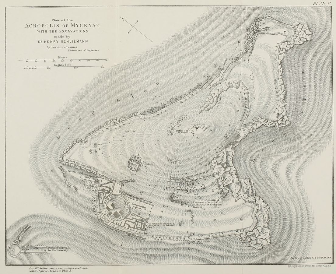 When the disclosures at Tiryns and Mycenæ were announced in England, my own first impression was that of a strangely bewildered admiration, combined with a preponderance of sceptical against believing tendencies, in regard to the capital and dominating subject of the Tombs in the Agora. I am bound to say, that reflection and a fuller knowledge have nearly turned the scales the other way. There are indeed, not only gaps to be supplied, but difficulties to be confronted, and to be explained; or to be left over for future explanation. Yet the balance, I will not say of evidence, but of rational presumption, seems as though it might ultimately lean towards the belief that this eminent explorer has exposed to the light of day, after 3000 years, the memorials and remains of Agamemnon and his companions in the Return from Troy. But let us endeavour to feel our way by degrees up to this question, gradually and with care, as a good general makes his approaches to a formidable fortress.