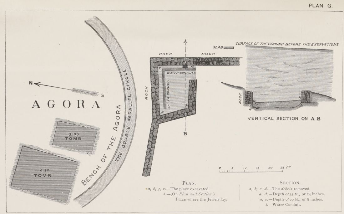 [404] The spot where the jewels were found is marked by the letter (a), both on the plan and section (Plan G).