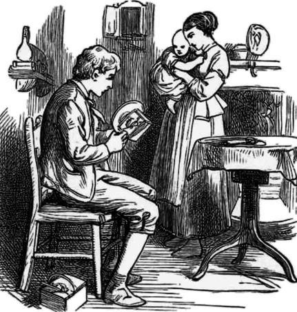 George was now twenty—sober, faithful, and expert. Finding a little spare time on his hands, he took to cobbling to increase his gains, and from this source contrived to save his first guinea. To this greater diligence he was urged by his love for Fanny Henderson, a fine sweet-tempered girl, whom he shortly married, and began housekeeping in the upper room of a small cottage in Wellington, six miles from Newcastle. Happy were they in each other, and in their simple, industrious, and frugal habits; and when a little son was born to them, George, who loved birds, rabbits, and dogs so well, welcomed with all the tenderness of a father's heart the little Bobby.
