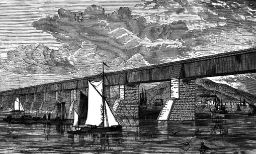 George built roads, Robert bridges to run them over; for railroads have given birth to the most stupendous and splendid bridges the world ever saw. The famous Tubular Bridge over the Strait of Menai—connecting Holyhead with the mainland—and the High Level Bridge at Newcastle, built by him, are monuments of engineering skill. You often see pictures of them. The most remarkable work of his genius, however, is on the other side of the Atlantic Ocean.