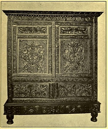 The metal mounts or hardware of furniture throughout the seventeenth century was simple beyond necessity, yet this simplicity has its charm. In earliest days, iron locks and hinges of a Gothic prudence as to size and invulnerability, ushered in the century, but it was still the time of Shakespeare, and that time threw a glance back to the Gothic just left behind.