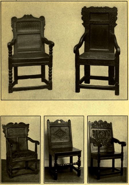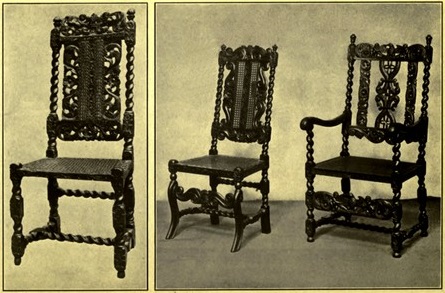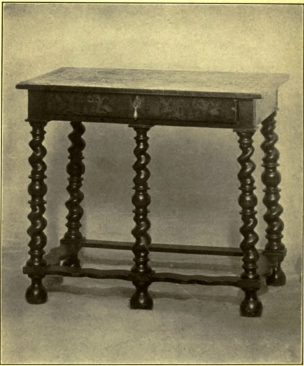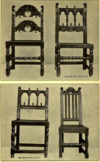 The pity of it is, that no sooner had the artistic eye[ 5] of the true collector begun to search for seventeenth century furniture than the commercial eye of the modern manufacturer began to make hideous variations on its salient features. He caught the name of Jacobean and to every piece of ill-drawn furniture he affixed a spiral leg and the Stuart name; or, he set a serpentine flat stretcher and called his mahogany dining set, William and Mary. These tasteless things fill our department stores, and it is they that are rapidly filling American homes. And the worst of it is, that both buyers and sellers are startlingly yet pathetically glib with attaching historic names to the mongrel stuff, and thus are they misled.