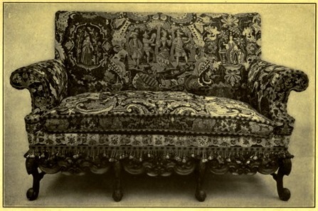 It was Madame de Maintenon who gave such inspiration to the work in France that England copied. Her school at St. Cyr, which she conducted solely for the purpose of giving happiness and education to penniless daughters of fallen aristocrats, at that school the young girls executed work that ranks with objects of art. A well-known American collector has a large sofa executed thus under the hand of Madame de Maintenon which represents scenes from a play of Molière's, the piece having also been given by these same young girls, then the cartoons drawn by an artist of high talent.