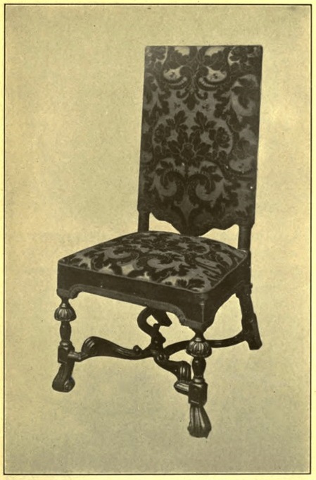 Plate XXIV—INTERESTING CHAIR TRANSITIONAL BETWEEN STUART STYLES AND WILLIAM AND MARY
