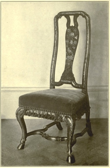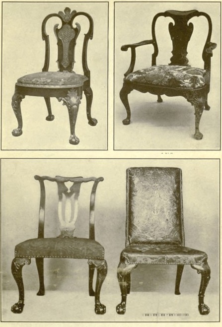 With carbriole leg and claw and ball foot adapted from Chinese Spanish leather set on with innumerable nails elegantly covers the taller. These chairs foreshadow the Georgian styles. Plate XXX
